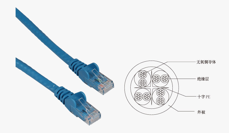 符合国际ANSI/TIA-568-C.2,ISO/IEC 11801 第二版,CENELEC EN 50173-1标准;带宽达到250MHz;非屏蔽跳线采用24AWG多股软铜线;每对线中间用十字PE条隔开,全面提升线缆性能;芯线采用T568B的排列方式,符合国际通用标准;提供多种颜色和长度,满足工程布线机房及用户端的不同管理需求。