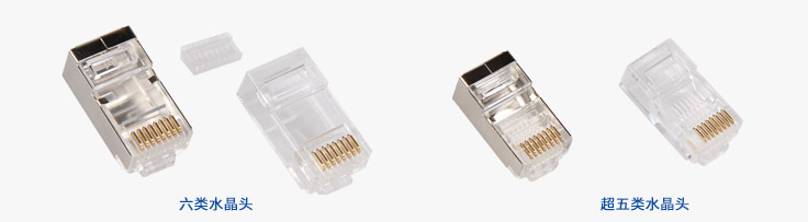 水晶头主体为高强度PC材质,优质耐用;金属材质为铜合金镀金50U'',确保不因插拔次数过多而影响传输性能;金属片采用三叉构造,确保与线缆之间的可靠连接;六类水晶头为两件式结构,大大优化传输性能。
