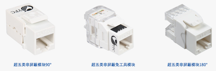 采用高耐冲击力的PC工程塑料;完全达到ISO/IEC 11801标准的规定;相较于传统的超五类信息模块产品,具有更好的产品性能;同时该产品还符合IEEE 802.3an的要求;适用于22-26AWG单股及多股线缆,支持T568A与T568B两种接线方式;有三种类型可供选择,免工具型模块可以大大减少施工时间,提高施工效率。